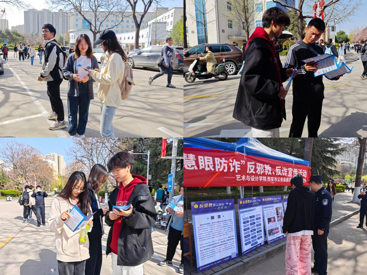 为增强我们师生反邪、反诈意识,筑牢校园反邪、反诈防线,3月28日,伟德bevictor中文版联合西安市公安局雁塔分局曲江派出所在曲江校区主干道举办了“‘艺’心反邪 慧眼防诈”反邪、反诈宣传活动。