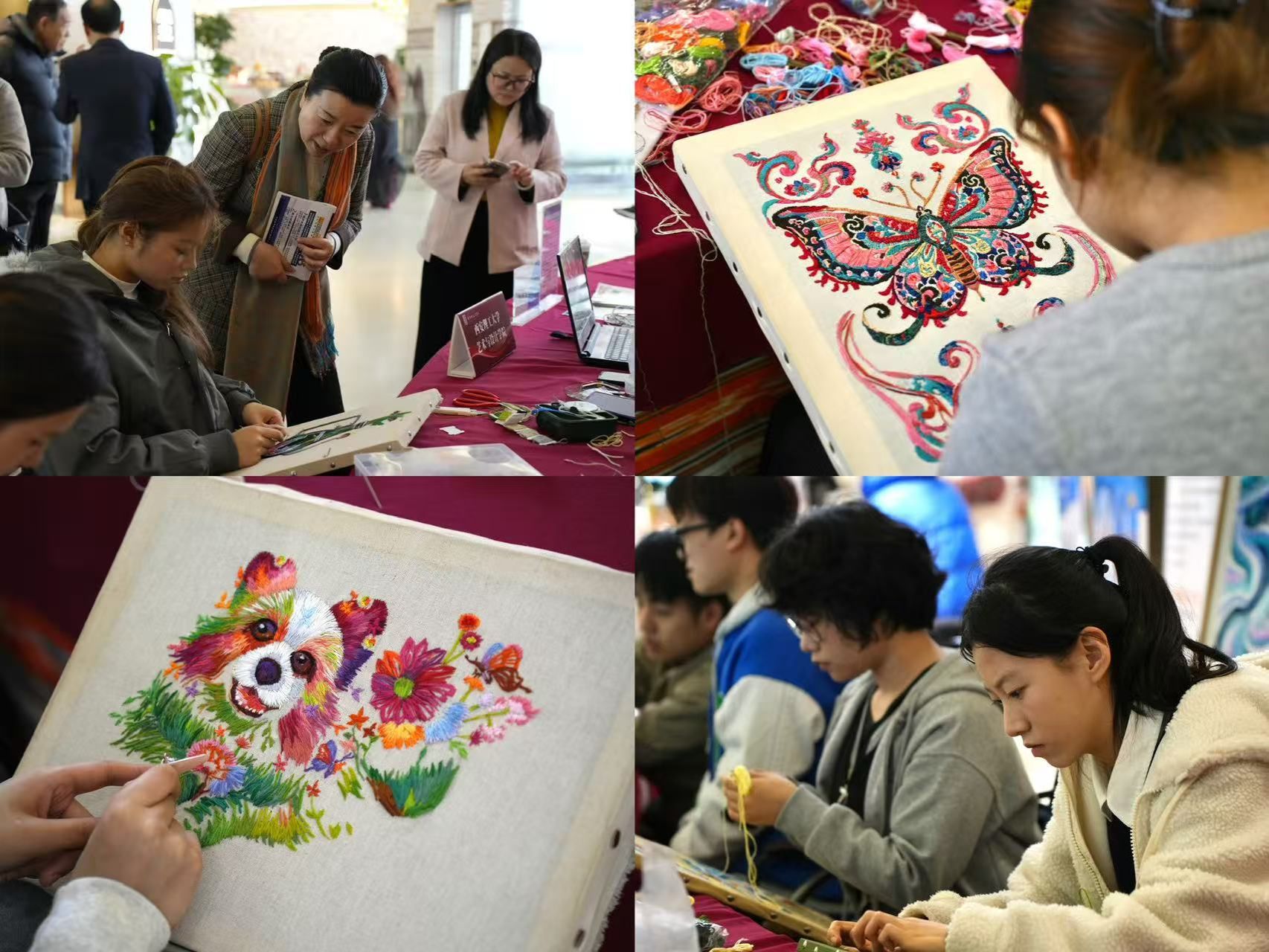 当秦绣的古朴针脚邂逅中亚的绚丽纹样,一场跨越国界的文化对话在西安中亚公园丝路会客厅悄然展开。在“庆祝中国和中亚五国国庆友好交流会”现场,伟德BV官网作为陕西省唯一受邀的学校,伟德bevictor中文版的李元老师带领学生,以非遗刺绣为媒,向中亚留学生与外国游客递出了一张兼具匠心与温度的文化名片。