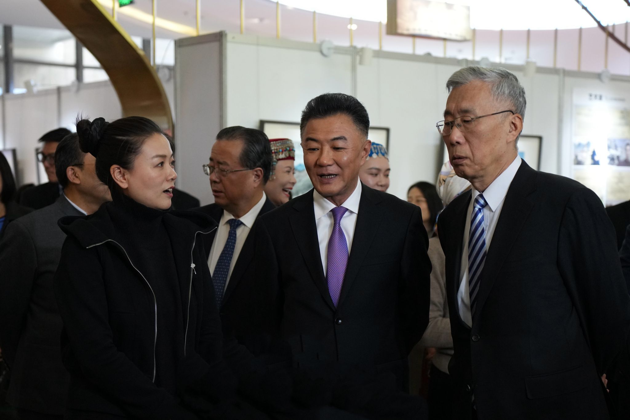 互动体验区里,中亚五国的留学生们早已按捺不住好奇,在同学们的帮助下拿起针线尝试创作,学院学生的刺绣技艺也受到了前来观摩的陕西省对外友好协会会长魏增军的肯定与赞许。刺绣是中国与中亚共有的文化基因,秦绣的严谨细密与中亚刺绣的色彩浓烈在此碰撞共鸣。作品中交融的纹样与现场的技艺互动,让抽象的“文化交流”变成可观赏、可参与的真实体验,正如中亚游客所言:“看到针线缝合的图案,才真正懂了‘美美与共’的意思。”青年学子的参与,也让非遗传承有了更鲜活的表达。