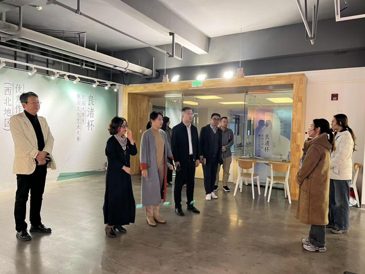 会后,李文英一行参观了陕西科技大学“首届大学生廉洁文化艺术大赛(良渚杯)西北地区优秀作品巡展暨陕西科技大学第六届廉洁文化艺术作品展”。“良渚杯”首届大学生廉洁文化艺术大赛优秀作品巡展第三站西北地区—陕西科技大学展,以“同青春,共廉洁”为主题,设有三个展厅,共100余件展品:一二展厅为优秀书法、绘画、雕塑作品,含清风颂廉奖赛道大奖《楷书条幅〈廉政文八篇〉》、金奖雕塑《清风拂山》、金奖油画《伞遗新作》、赛道大奖《不忘初心,清正廉洁》等;三展厅则是陕西科技大学师生共同创作的优秀作品。
