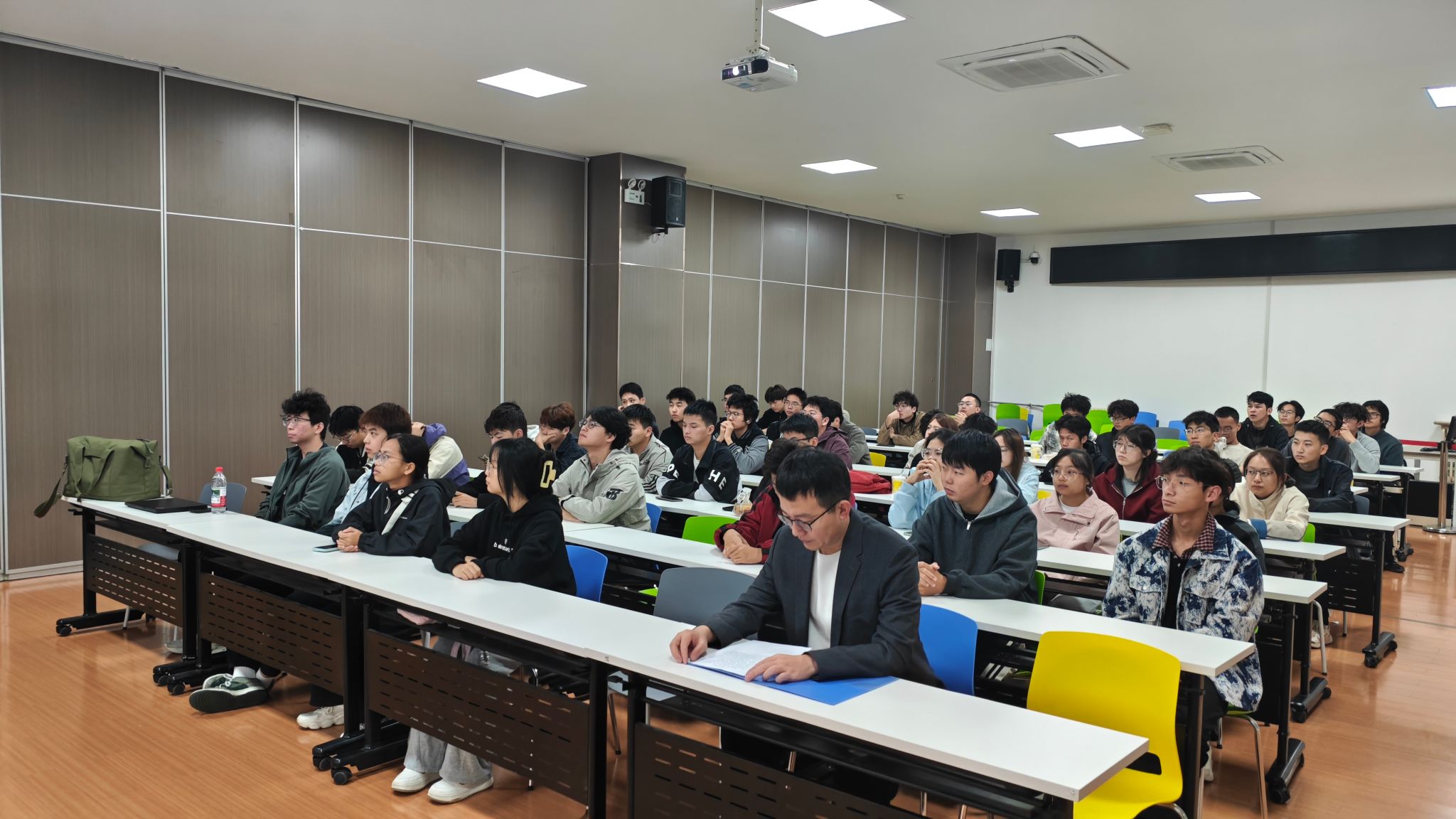 周老师以《创造改变世界设计改变人生》为主题展开。首先介绍了工业设计系的历史沿革与专业设置;其次,围绕日常践行实践内容与需掌握的核心知识要点两大维度,深入阐释了专业教学计划及2025届本科生培养方案;最后,周老师通过列举优秀毕业生的具体案例,鼓励同学们积极参与各类专业竞赛,在实践中持续提升个人能力,为自身赢得更优的发展前景。